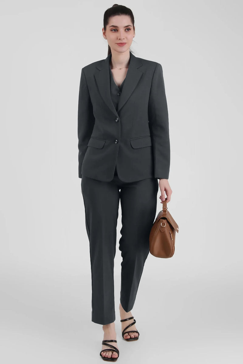 Stretch Crepe Single Breasted Blazer, Bluish Gray
