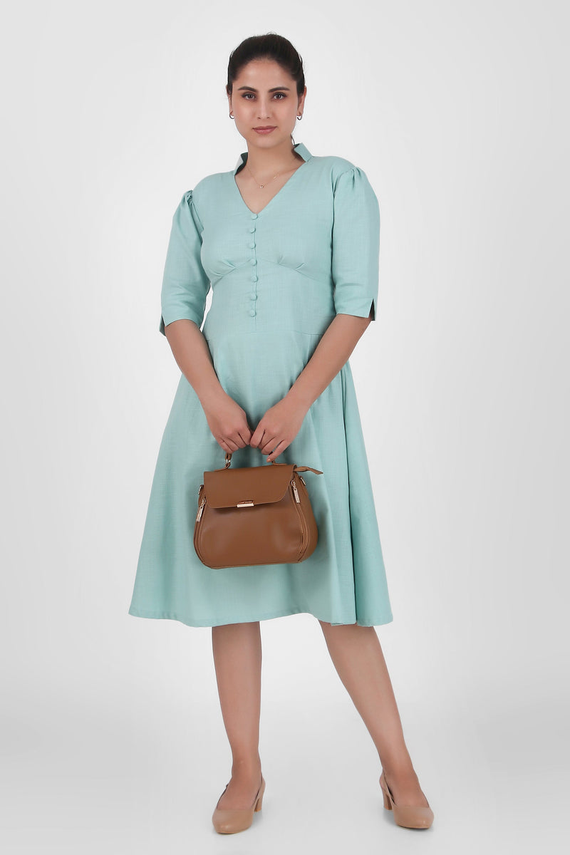 Timeless Charm Panelled Linen Dress, Pastel Green