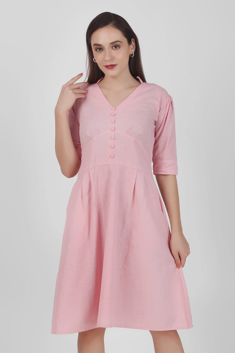 Timeless Charm Panelled Linen Dress, Pastel Pink