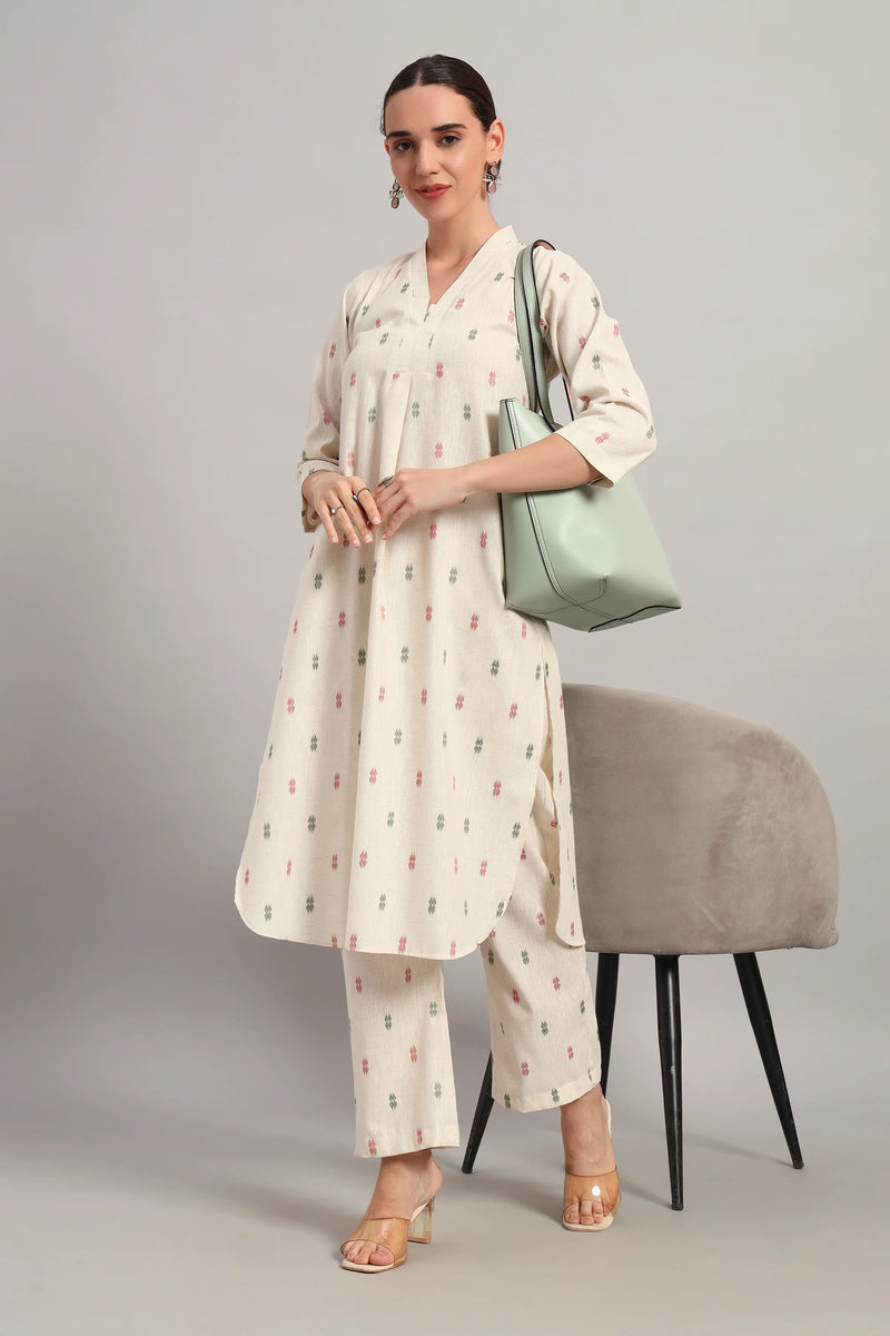 Subah Se Shaam Kurta Set, Beige Black Leafs