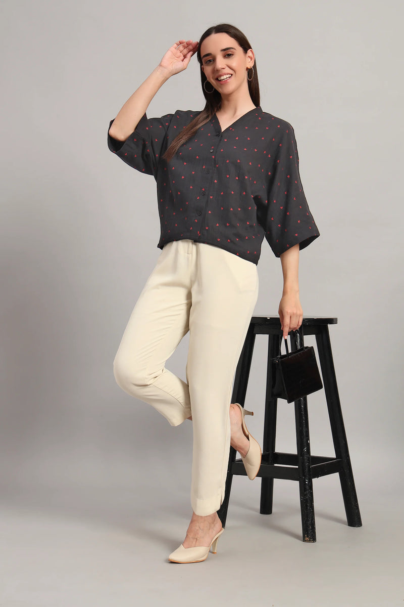 Flare Affair, Dark Grey V-Neck Shirt Style Top