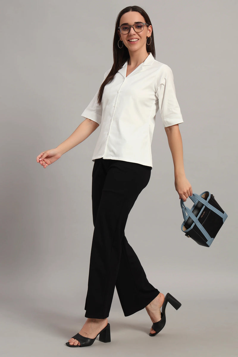 The Split Collar Classic Top, White