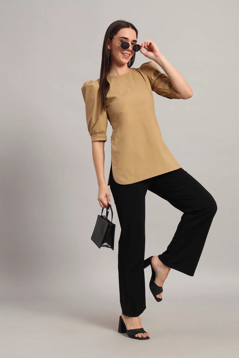 Classic Tulip Sleeves Cotton Top, Plum