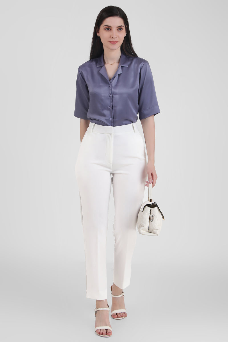 Short Sleeve Satin Shirt, Lavendar