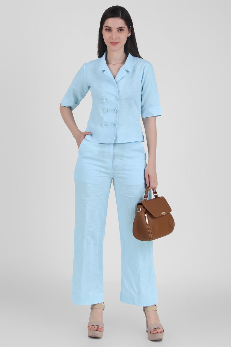 Linen Open Collar Double Breasted Shirt, Sky Blue