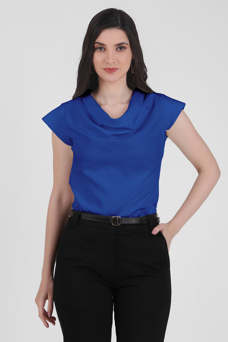 Timeless Draped Neck Top, Blue
