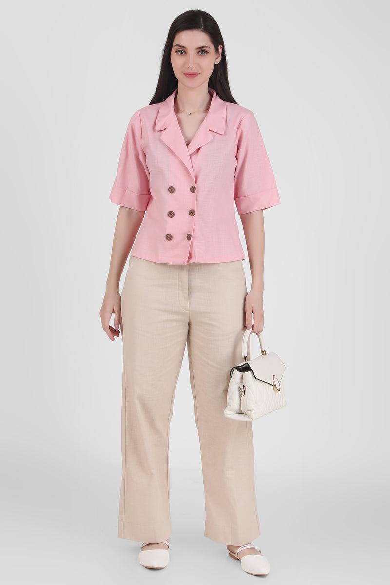 Linen Open Collar Double Breasted Shirt, Pastel Pink