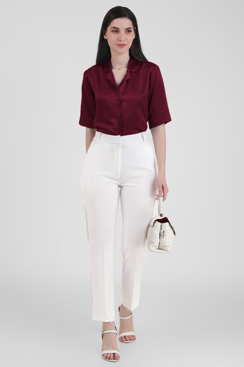 Short Sleeve Satin Shirt, Wine