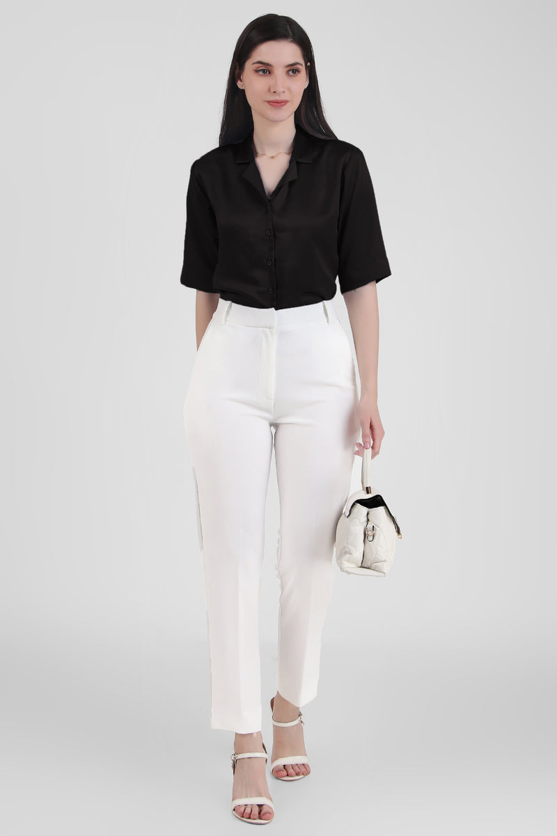 Short Sleeve Satin Shirt, Black
