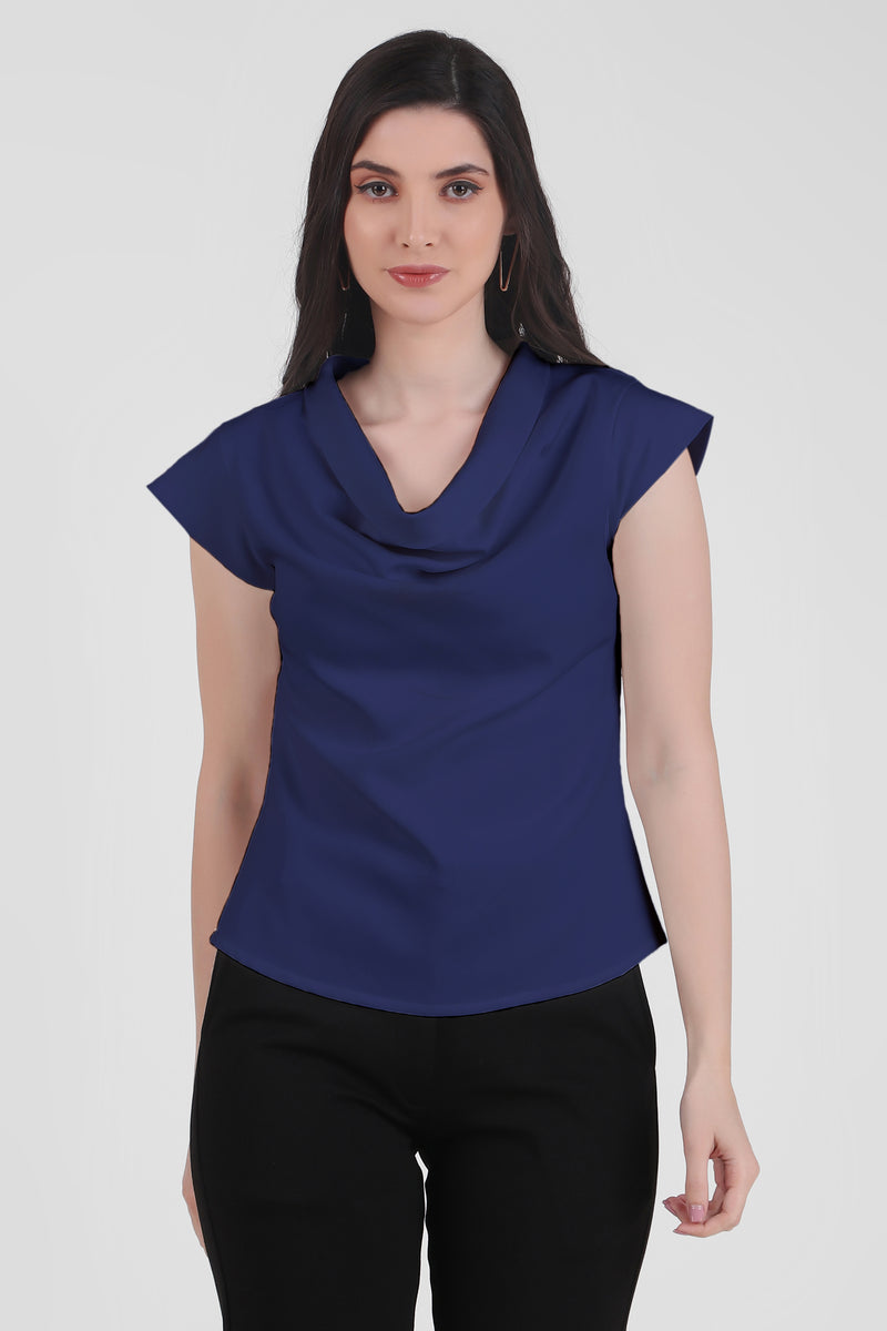 Timeless Draped Neck Top, Midnight Blue