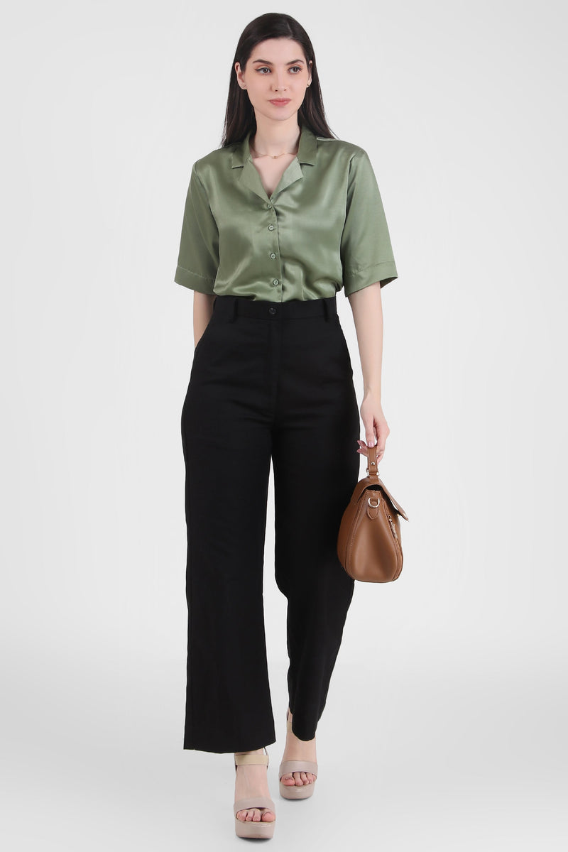Short Sleeve Satin Shirt, Sage Green