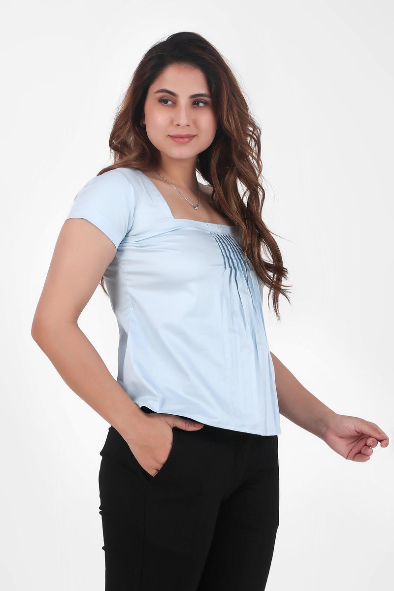 Rectangular Pleated Elegance Top, Sky Blue