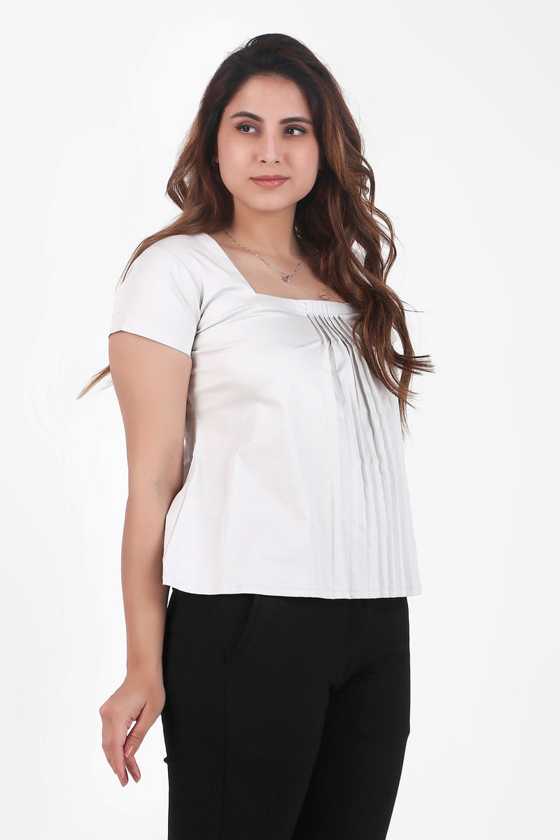 Rectangular Pleated Elegance Top, Light Gray
