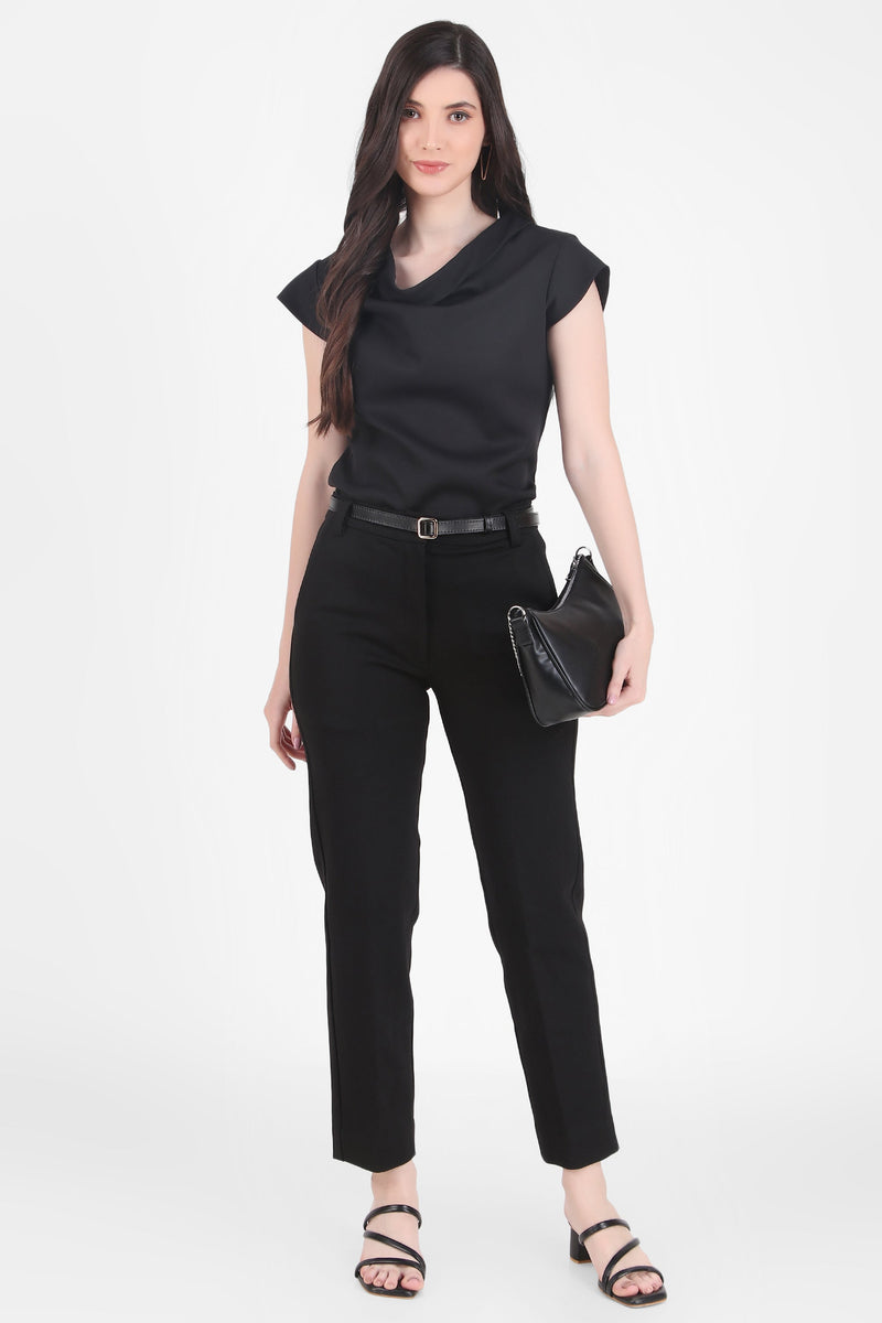 Timeless Black Draped Neck Top