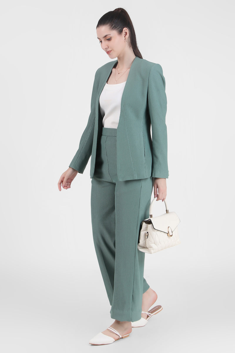 Front Open Style Blazer with Flowing Trousers, Sea Green