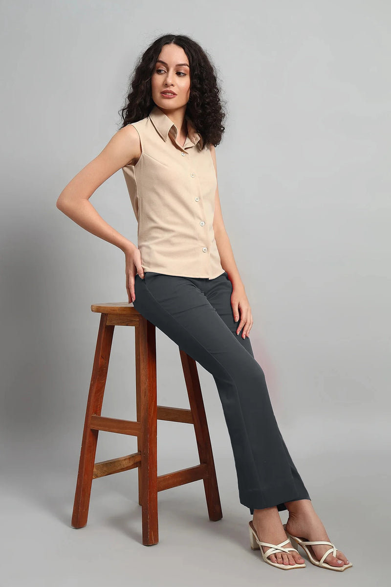 Cotton Slim Fit Formal Trousers, Navy Blue