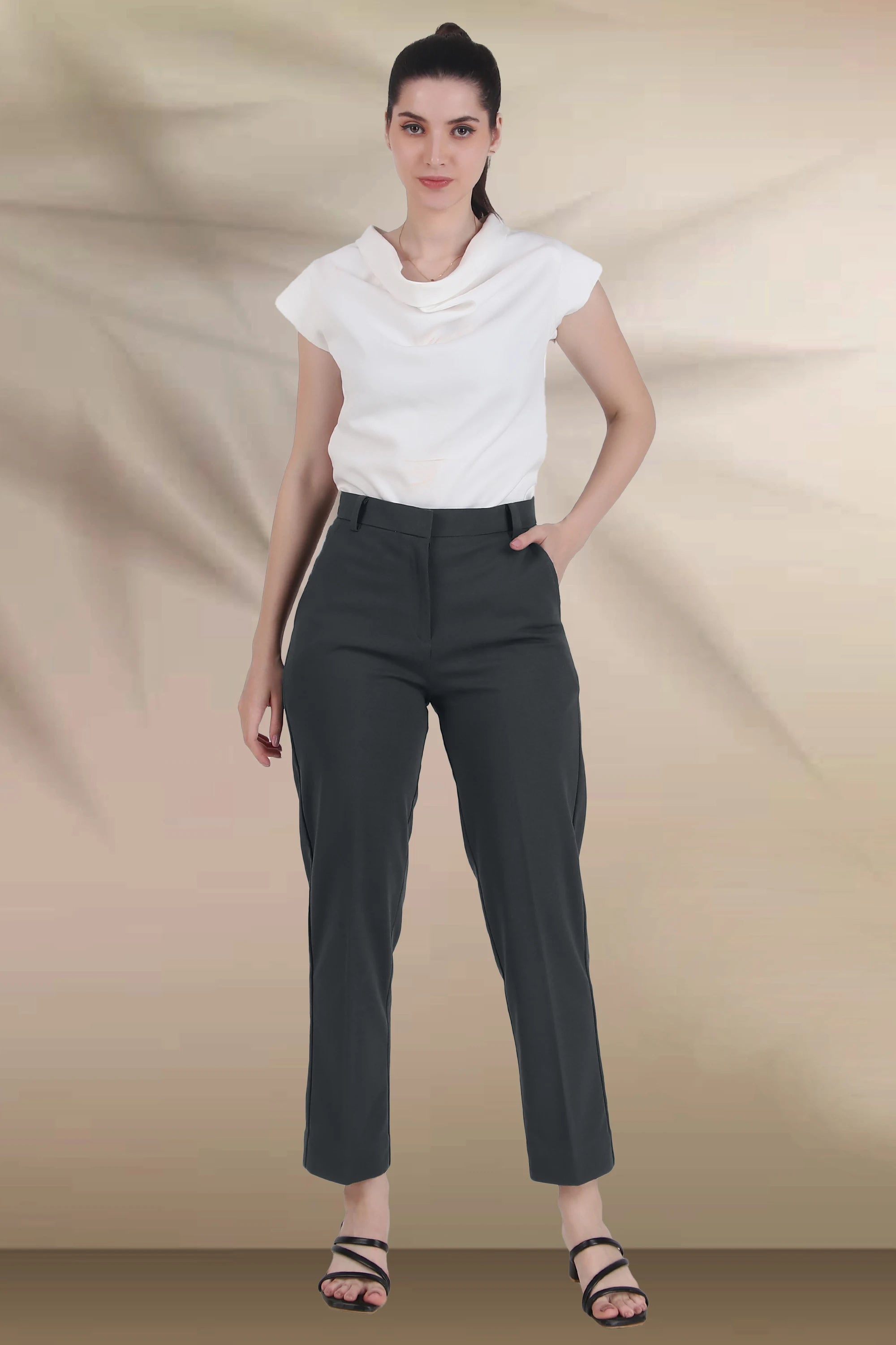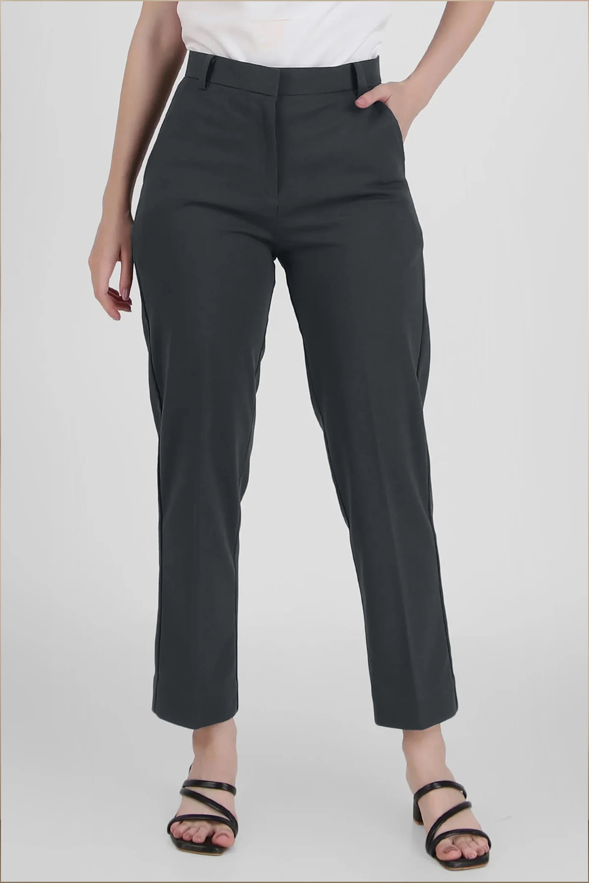 Elevate your professional wardrobe with our Straight Fit Formal Trousers. Crafted from crepe stretch fabric for comfort and flexibility, these trousers feature a mid-rise waist with zip fly, inside button, and metal hook fastening for a sleek look. Complete with side pockets and a straight fit that flatters. Style it effortlessly with a crisp white blouse and pumps for a polished office ensemble.